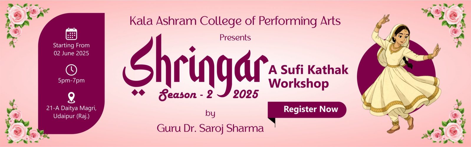 Kala Ashram is an international organization and we focuses on imparting training in the field of kathak along with the various other associated disciplines i.e. vocal, instrumental music and yoga.
